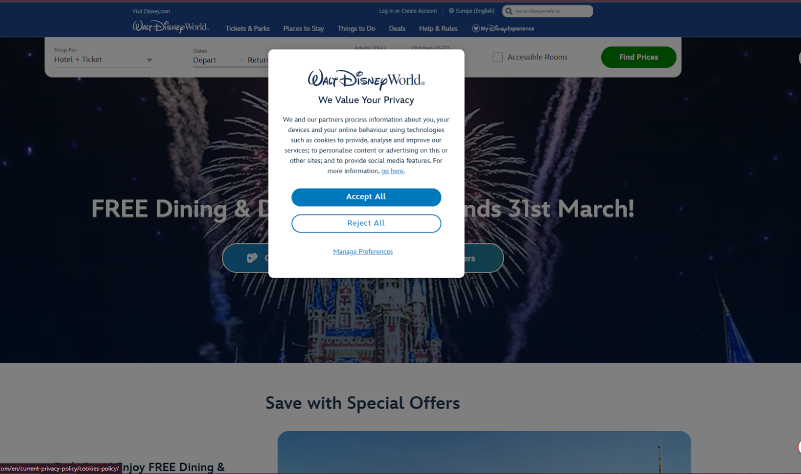Disney Worldâs site uses a centered modal that feels polished and on-brand, with a soft visual style and a clear focus on trust and reassurance.