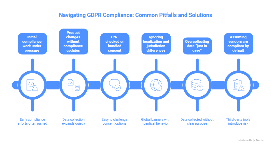 Months later, the product has changed and the compliance setup has not. Data collection expands quietly, while controls stay the same.