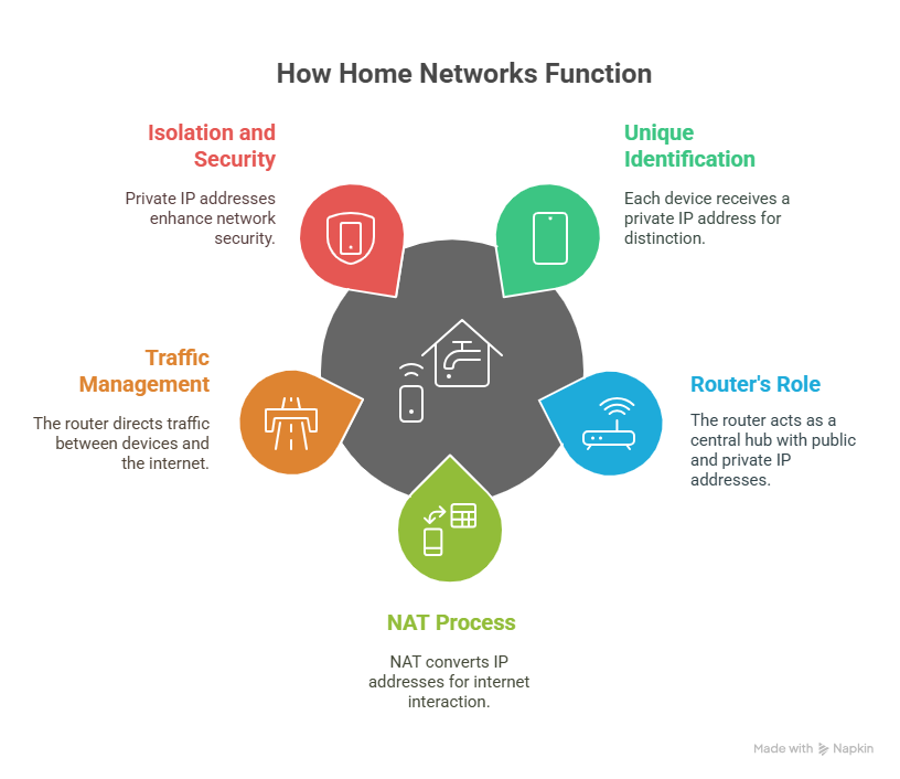 - Home networking: Your router assigns private IPs to every device connected to your Wi-Fi. That means your phone can stream to your smart TV, your printer can talk to your laptop, and none of it touches the public internet. Itâs safe and self-contained.